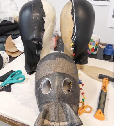 Initiation aux techniques de réalisation d’un chapeau de spectacle en toile gommée tendue de tissu.